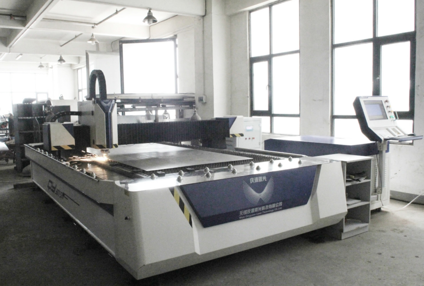 郑州科晶电炉有限公司一楼的生产车间,厂房环境,以及生产电炉的大型设备,高精度激光切割机等大型生产设备图片等相关信息。